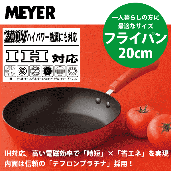 IHにも対応! MEYER マイヤー イタリアンレッド IH対応 テフロン プラチナ加工 三層底 フライパン 20cm※実物は画像より深みのある赤色となります【RCP】