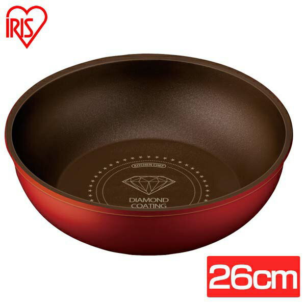 ダイヤモンドコートパン 炒め鍋26cm送料無料 H-IS-W26 IH対応 ガス対応 フライパン 炒めなべ いため鍋 深型 単品 アイリスオーヤマ ダイヤモンドコート ダイヤモンドフライパン ティファールのような